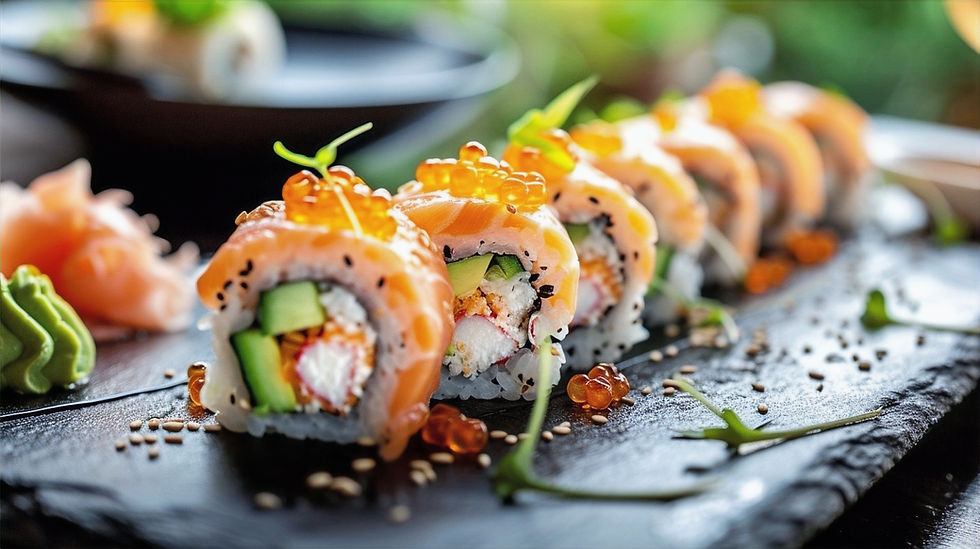 Maki Sushi Nytelse - Opplev den perfekte sammensmeltingen av eddikris, fersk sjømat, og fargerike grønnsaker i hver maki-bit.